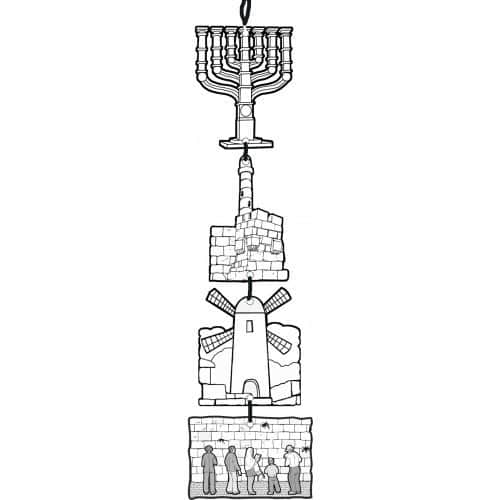 מובייל יום ירושלים, עשוי משקף פלסטי, ניתן לצבוע עם צבעים רגילים ולורדים לא מחיקים,