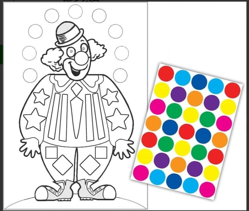יצירה ליצן לצביעה עם מדבקות