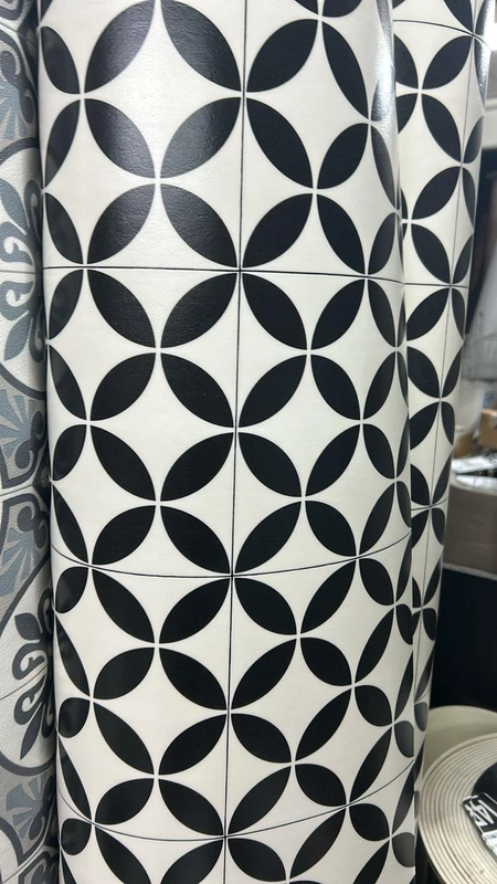שטיח פי וי סי דגם מעויינים שחור ולבן