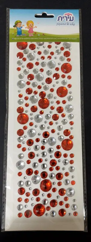 מדבקות אבני חן גווני אדום כסף במגוון גדלים