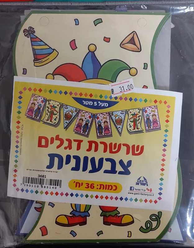 שרשרת דגלי פורים צבעונית