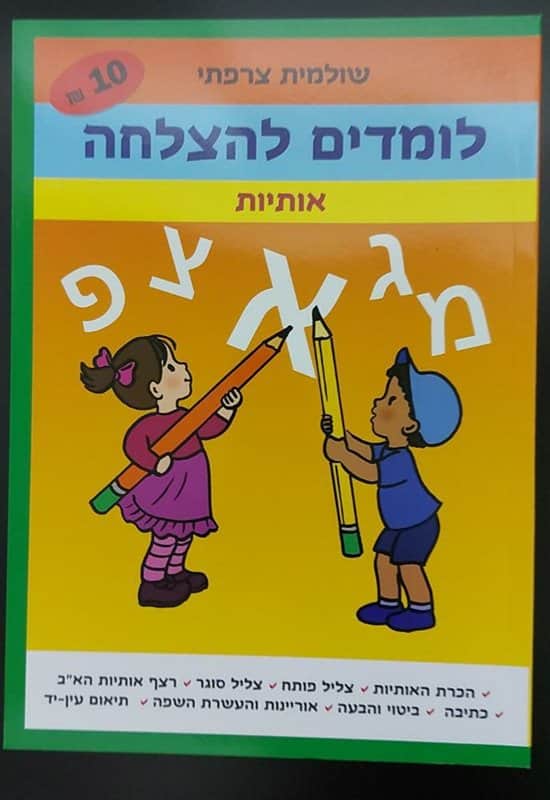 אותיות- הכרת האותיות, צליל פותח, צליל סוגר, רצץ אותיות הא"ב, כתיבה, ביטוי והבעה, אוריינות העשרת השפה, תיאום עין- יד