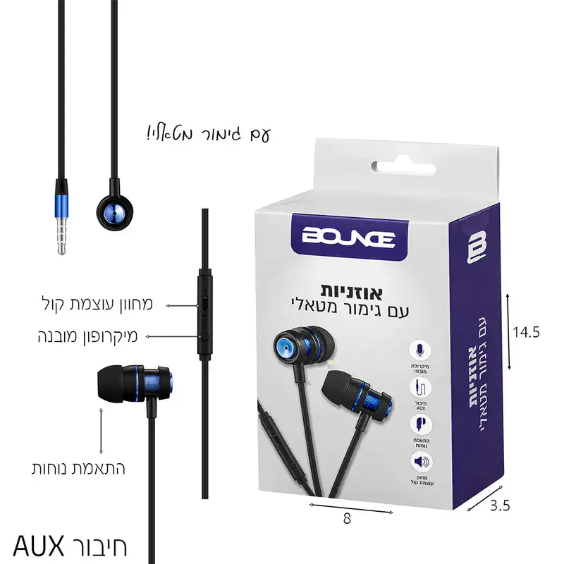 אוזניות חוט מטאלי כחול