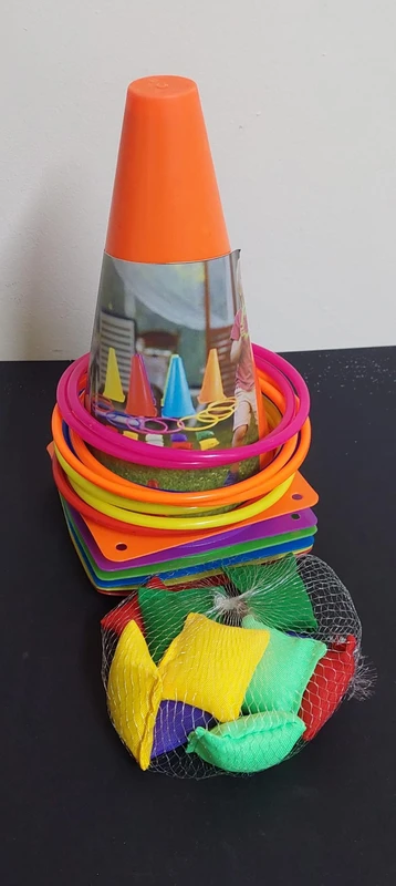 6 קונוסים+ 10 טבעות+ 10 שקיות שעועית)
