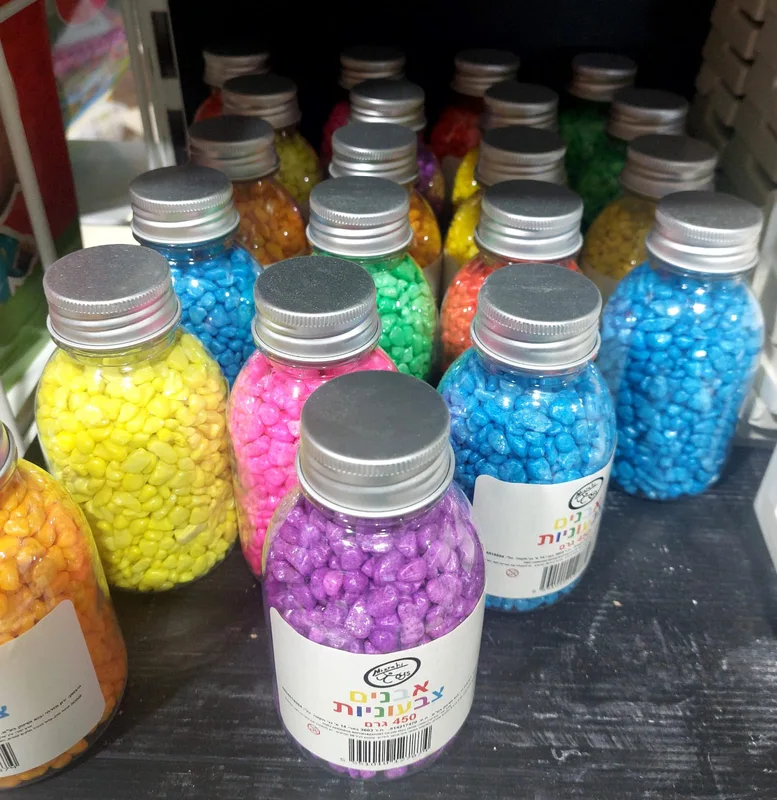 בקבוק אבנים קטנות צבעוניות ליצירה
